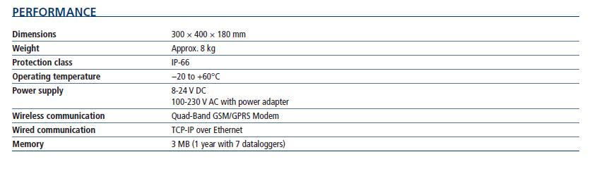 struktur. Data dapat disimpan dalam memori internal untuk pengambilan manual, dikirim ke database SDB jauh dengan koneksi GPRS ponsel nirkabel atau dikirimkan oleh koneksi Ethernet ke PC lokal. Sambungan ke Dataloggers dapat nirkabel atau kabel. Dalam kasus koneksi kabel, Unit Pusat juga menyediakan kekuatan untuk yang dataloggers.