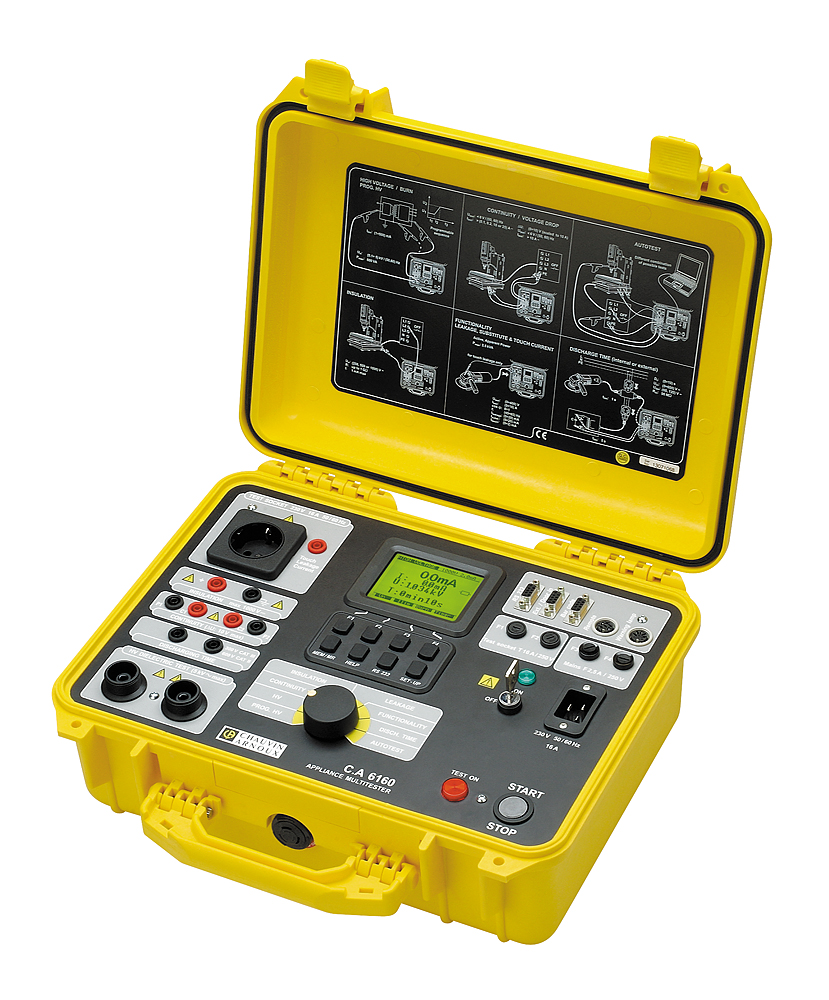 CA 6160 adalah instrumen portabel yang kuat untuk pengujian sertifikasi lengkap dari berbagai peralatan listrik dan peralatan: uji dielektrik, kontinuitas, drop tegangan, hambatan isolasi, kebocoran arus, waktu debit dan pengujian fungsional