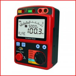 This professional Voltage Insulation tester is designed with voltage overload protection and high voltage indicator to safely measure voltage in 50V, 100V, 250V, 500V,1000V,2500V and 5000V. It has a dual display when measuring under Insulation Resistance, it simultaneously show the selected voltage range and insulation resistance measured reading. These measurements can be use to evaluate insulation integrity. This troubleshooting tool is a quality control measure at the time a piece of electrical equipment is produced and an installation requirement to help ensure specifications are met and to verify proper hookup. It also use as a periodic preventive maintenance task