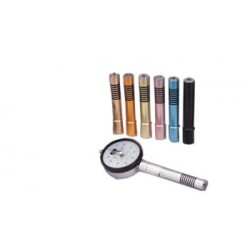 The Multi-Scale base kit consists of a Type A durometer, and your choice of one of more color-coded barrel adapters for D, B, C, DO, O, OO, OOO or E scales (each durometer barrel sold separately).