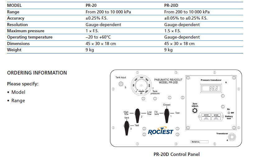 • Entah sebuah test gauge 105 mm diameter (model PR-20) menampilkan sebuah cermin anti-paralaks, atau presisi-tinggi uji digital gauge (model PR-20D).