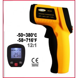 This IR Thermometer with good precision is designed to quickly & accurately measure temperature of object's surface from -50 to 380°C or -58 to 716°F with Laser guide. It safely measure the surface temperature of hot, hazardous, reflective, shiny, hard-to-objects with ease.