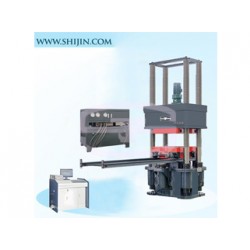The main engine adopts the lower frame structure of the oil cylinder, which is mainly composed of a base, a beam, a screw rod, a cylinder and a piston. The beam is connected to the four lead screws through the nut, the lower end of the screw is mounted on the base, and is fastened with a nut, thereby forming The force frame. The motor reducer that is mounted on the beam drives the sprocket to rotate, thereby driving the nut to rotate, thereby realizing the vertical movement of the beam, so that the test space can be easily adjusted. The upper and lower discs and the ball head spherical seat are fixed on the beam. The cylinder and the piston are fixed in the center of the base, and the fixed pressure plate is mounted on the piston, and the moving platen is connected to the guide rail through the wheel, so that the large sample can be easily placed.